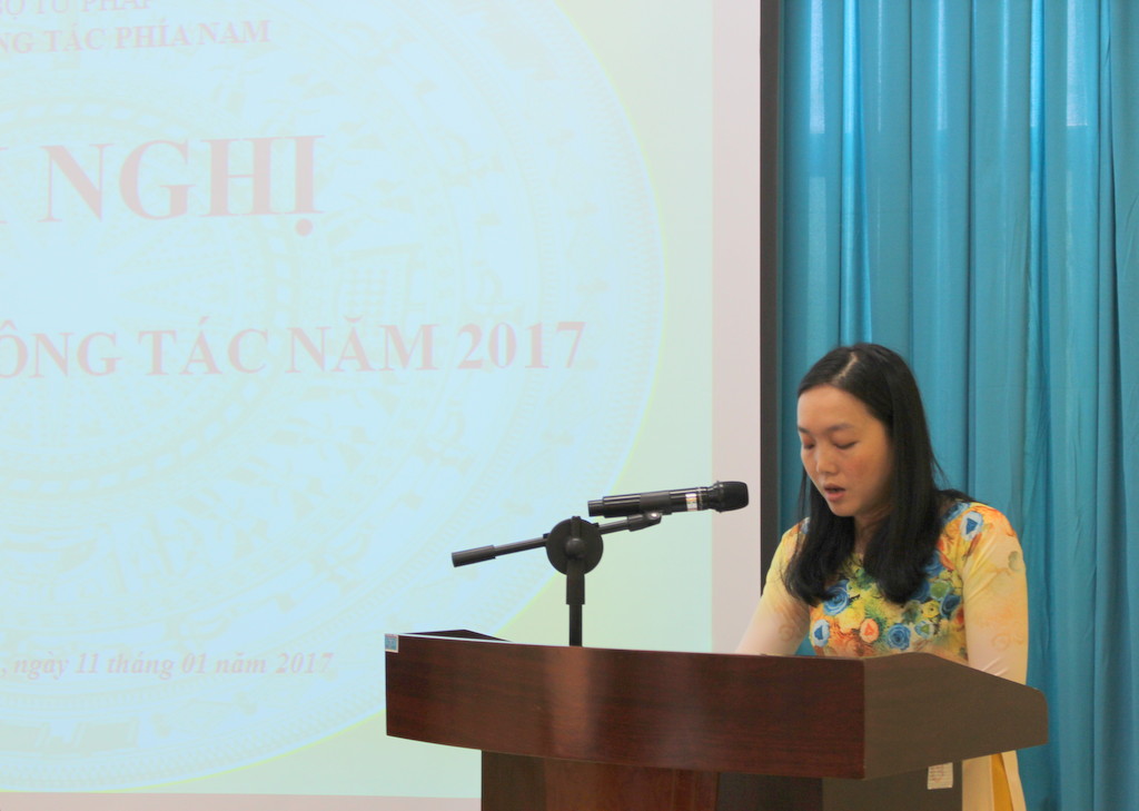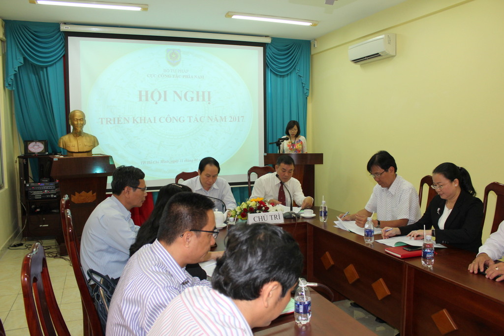 Báo cáo kết quả công tác năm 2016, đồng chí Nguyễn Kim Phượng - Phó Chánh Văn phòng Cục Công tác phía Nam cho biết, trong điều kiện hoạt động còn gặp nhiều khó khăn, Cục Công tác phía Nam đã từng bước khắc phục, triển khai nhanh, hiệu quả chức năng, nhiệm vụ, thẩm quyền được giao, phát huy tính sáng tạo, chủ động trong giải quyết công việc. Theo đó, năm 2016, Cục Công tác phía Nam đã hoàn thành xuất sắc các nhiệm vụ đề ra theo Quyết định số 204/QĐ-BTP ngày 17/02/2016 của Bộ trưởng Bộ Tư pháp phê duyệt Kế hoạch công tác năm 2016 của Cục Công tác phía Nam và đã đạt được nhiều kết quả quan trọng được Bộ Tư pháp tặng danh hiệu “Tập thể lao động xuất sắc” cho 02 đơn vị là Cục Công tác phía Nam và Văn phòng Cục.