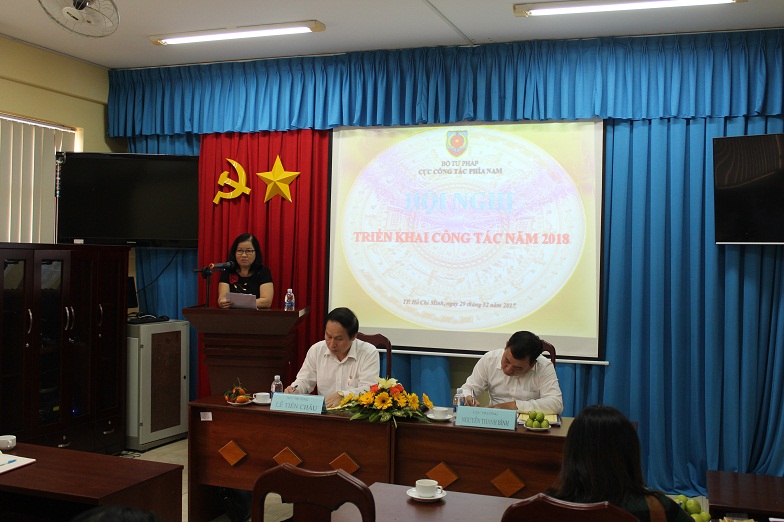 Chiều ngày 29/12/2017, Cục Công tác phía Nam – Bộ Tư pháp đã tổ chức Hội nghị triển khai công tác năm 2018. Đồng chí Lê Tiến Châu – Ủy viên Ban Cán sự, Thứ trưởng Bộ Tư pháp đã chủ trì và chỉ đạo Hội nghị. Tham dự Hội nghị có Lãnh đạo Vụ Tổ chức cán bộ, đại diện lãnh đạo các đơn vị thuộc Bộ tại khu vực phía Nam.