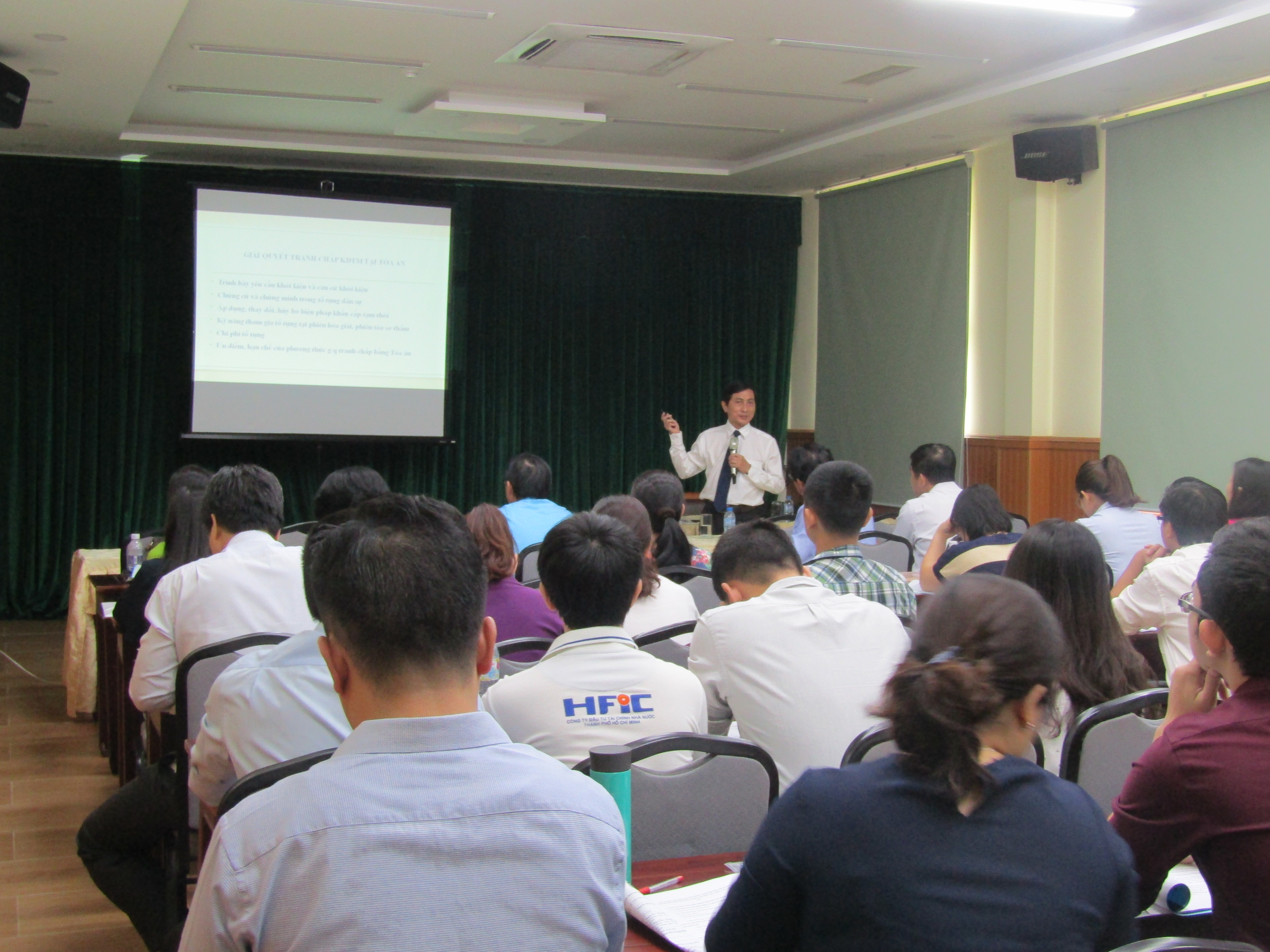 “Giải quyết các tranh chấp hợp đồng trong kinh doanh thương mại” do Thẩm phán Nguyễn Công Phú, Phó Chánh Tòa Kinh tế Tòa án Nhân dân TP. Hồ Chí Minh trình bày, với sự tham gia của các cán bộ pháp chế, chuyên viên và lãnh đạo của các sở, cơ quan, Tổng Công ty, Tập đoàn, ngân hàng và doanh nghiệp tại khu vực phía Nam.