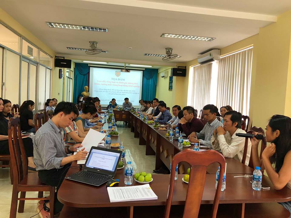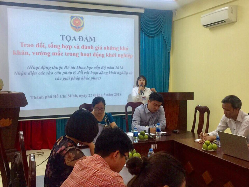 Tọa đàm được thực hiện dưới dự chủ trì của bà Huỳnh Thị Lệ Thủy, Phó Cục trưởng Cục Công tác phía Nam và ông Trịnh Xuân Tùng, Phó Bí thư đoàn Thanh niên Bộ Tư pháp. Tham dự Tọa đàm gồm có đại diện nhiều doanh nghiệp khởi nghiệp, các chuyên gia, luật sư, các đoàn viên thuộc các đơn vị của Bộ Tư pháp tại phía Nam. Đây là một trong những hoạt động nhằm triển khai Đề tài khoa học cấp Bộ năm 2018 “