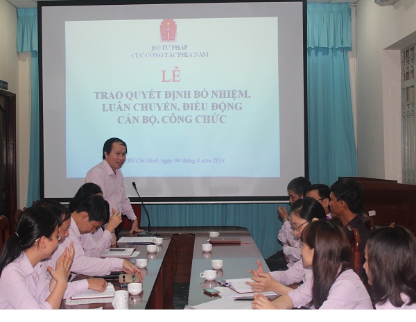 Sáng 04/8/2014, trong Ngày pháp luật tháng 8/2014 của cơ quan, Cục Công tác phía Nam (Cục CTPN) đã tổ chức lễ trao Quyết định điều động, bổ nhiệm đối với 05 đồng chí: