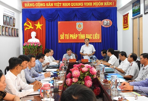 Đoàn kiểm tra đã nghe đại diện Sở Tư pháp báo cáo về tình hình triển khai công tác tư pháp 7 tháng đầu năm 2022, nêu những khó khăn, vướng mắc và đề xuất, kiến nghị. Theo đó, năm 2022 Sở Tư pháp tỉnh Bạc Liêu đã chủ động tham mưu Ủy ban nhân dân tỉnh ban hành đầy đủ, kịp thời các kế hoạch triển khai các nhiệm vụ công tác tư pháp năm 2022. Công tác thẩm định văn bản quy phạm pháp luật được thực hiện theo đúng quy định về trình tự thủ tục ban hành văn bản quy phạm pháp luật và đảm bảo rút ngắn hơn so với thời gian quy định. Sở Tư pháp đã tham gia ý kiến đối với 49 đề nghị xây dựng văn bản quy phạm pháp luật; thực hiện góp ý 117 dự thảo; thực hiện thẩm định 25 dự thảo văn bản quy phạm pháp luật.